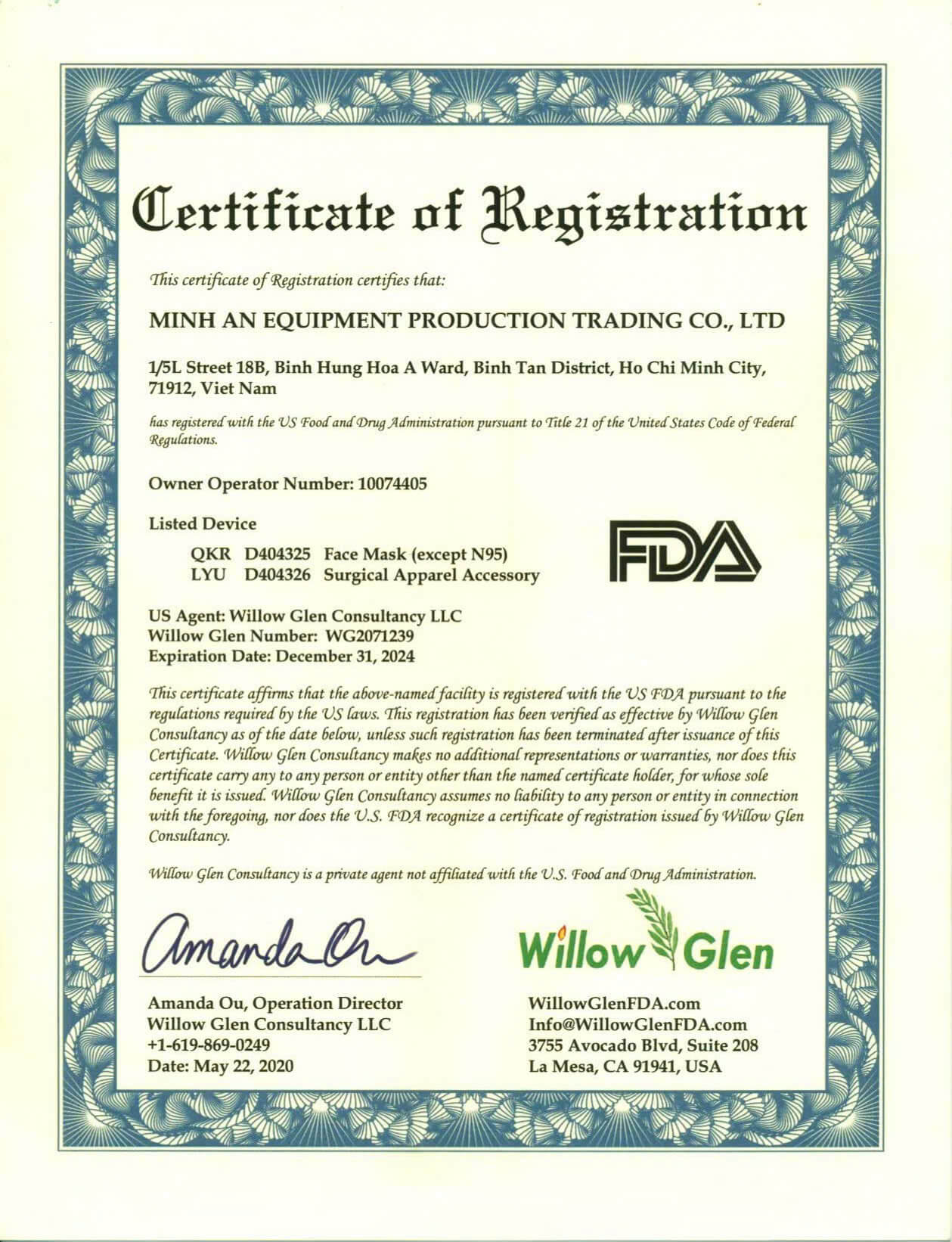 CÔNG TY TNHH SẢN XUẤT THƯƠNG MẠI THIẾT BỊ MINH AN – Giấy phép kinh doanh số: 0314182505 cấp này 05/01/2017 bởi Sở Kế Hoạch Và Đầu Tư Thành Phố Hồ Chí Minh.