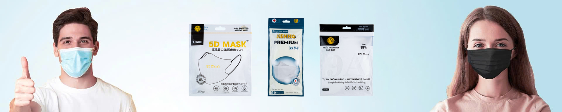 KENKO có ba dòng sản phẩm chính: Khẩu trang dùng một lần (3 lớp & 4 lớp), Khẩu trang y tế, Khẩu trang phẫu thuật…